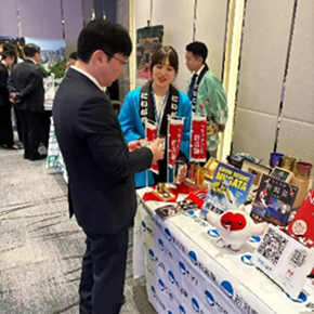 新潟県・新潟市ブースでは、燕三条製のタンブラーや酒器、洋食器などの県産品の展示や、新潟産コシヒカリのPR、さらにスキー観光を中心とした新潟観光パンフレットの配布を行いました。
