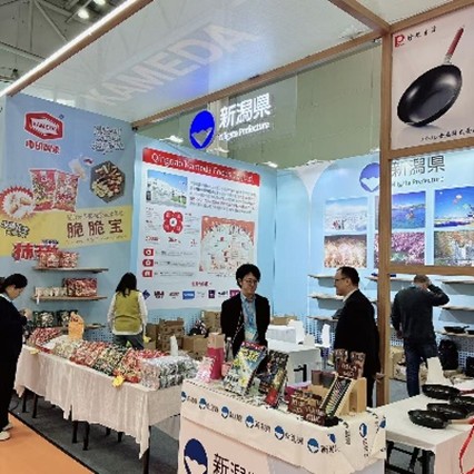 今回、新潟県は1号館「国家形象展区」にブースを出展し、県内企業2社が厨房用品や米菓の販売を行ったほか、新潟県PRブースも設置し、観光のPRや県産品の展示、新潟の日本酒の試飲も実施しました。